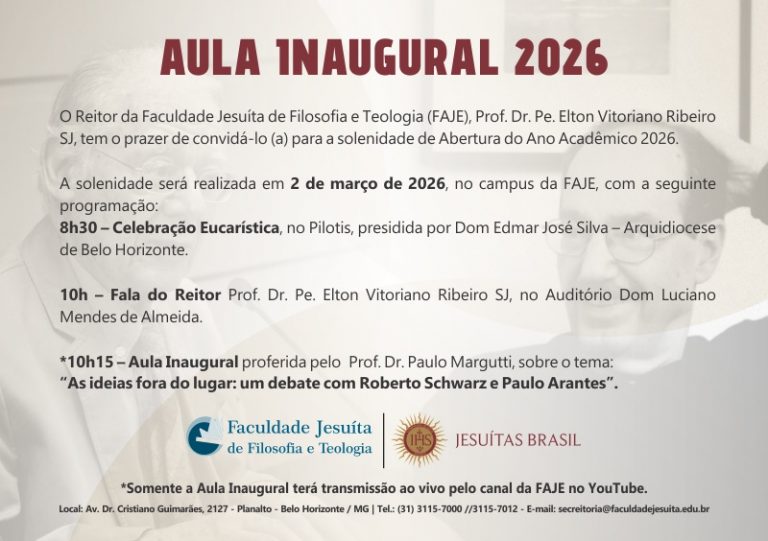 O Reitor da Faculdade Jesuíta de Filosofia e Teologia (FAJE), Prof. Dr. Pe. Elton Vitoriano Ribeiro SJ, tem o prazer de convidá-lo (a) para a solenidade de Abertura do Ano Acadêmico 2026.