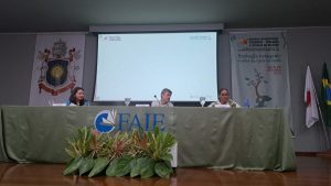O segundo dia do Simpósio, no dia 9, foi aberto com a mesa-redonda com o tema “Ecologia e Capitalismo”, no auditório Dom Luciano Mendes de Almeida, no campus da FAJE. Participaram a Profa. Dra. Mariza Rios (Centro Universitário Dom Helder) e o Prof. Dr. Élio Gasda SJ (FAJE),com a moderação da Profª Dra. Cláudia Maria Chaves de Oliveira (FAJE). Em sua palestra, o Prof. Dr. Élio Gasda abordou o tema “Sociedade, Ecologia e Capitalismo”, destacando que o mundo vive uma crise profunda e que, na raiz dessa crise está o ser humano, sendo o sistema capitalista sua maior causa.