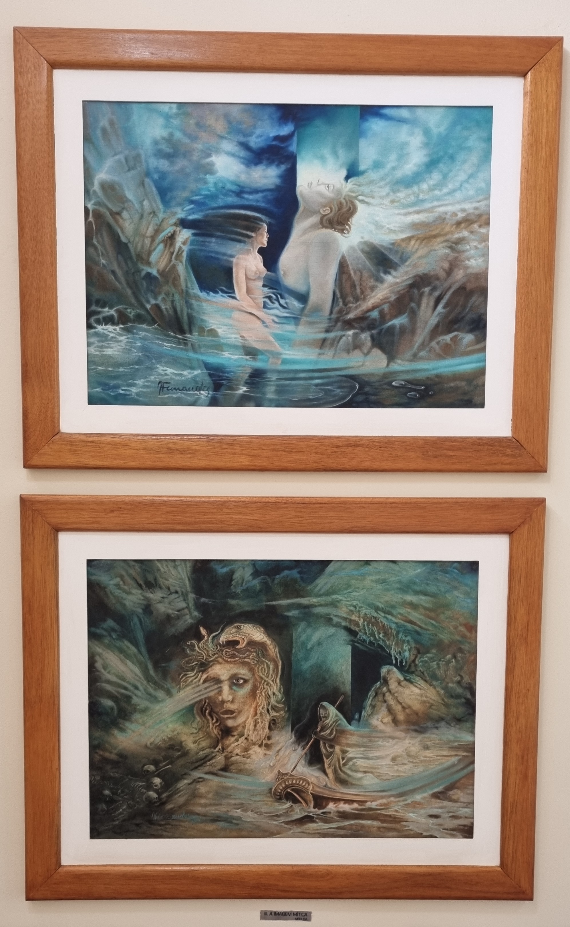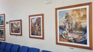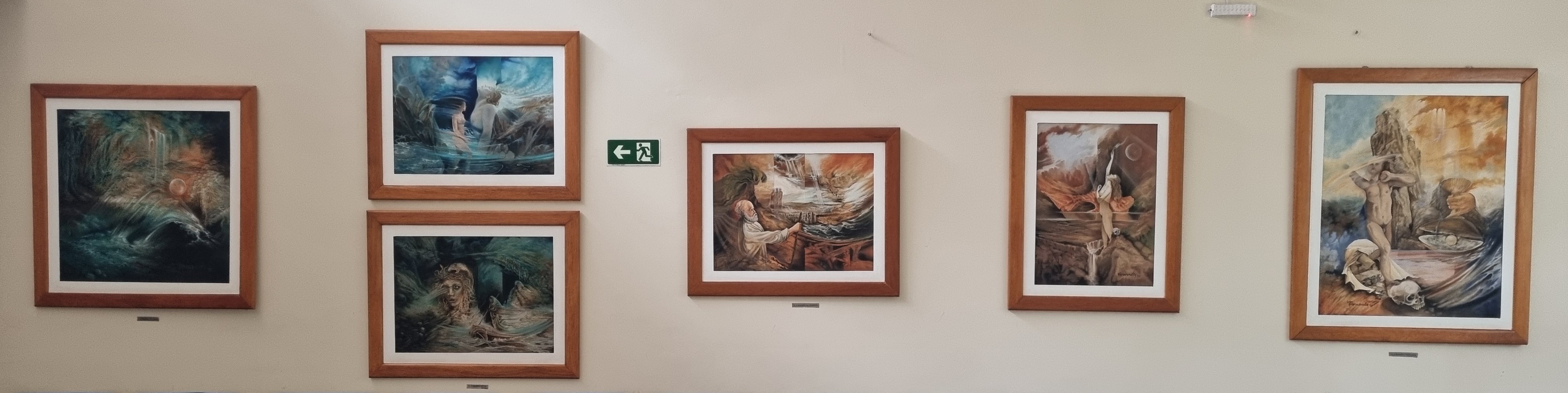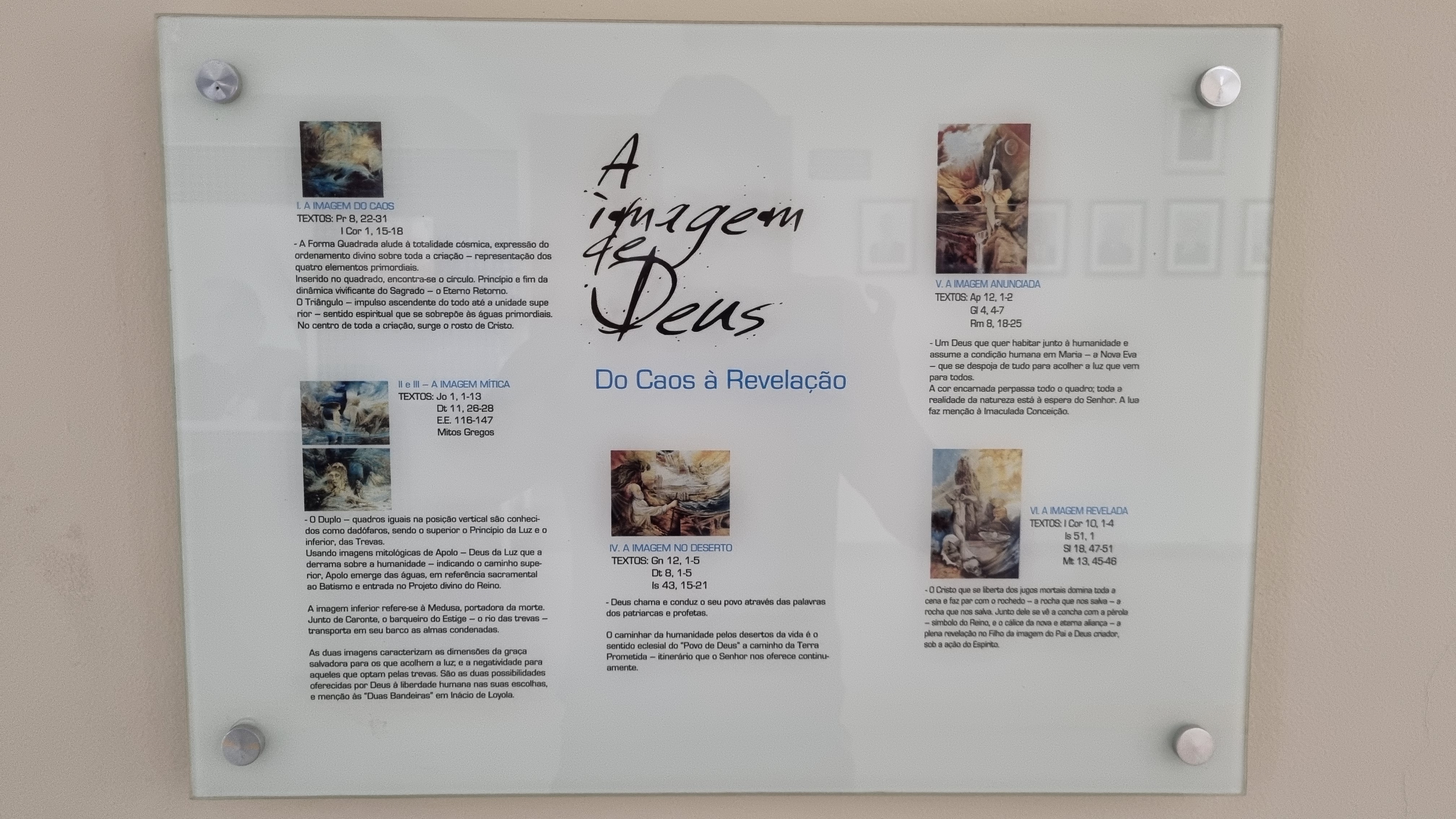 Pe. José Fernandes falou aos alunos sobre o trabalho intenso de diálogo fé e cultura por detrás daqueles quadros, para que, depois, a arte possa fruir… Os quadros retratam a pluralidade de  fé e de culturas, pois ali estão representados elementos da mitologia grega e da revelação cristã nas Sagradas Escrituras.