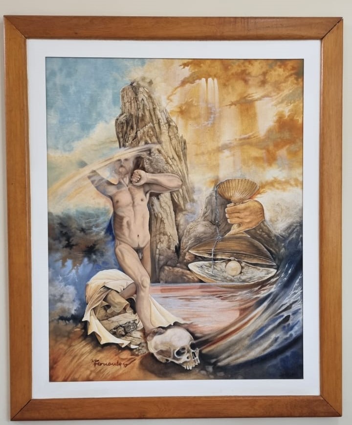 Os alunos da disciplina de História da Arte, do curso de Filosofia, tiveram uma aula diferente no dia 24 de setembro. O sacerdote jesuíta e artista plástico, Pe. José Fernandes, apresentou-lhes sua coleção de quadros pintados por ele na época em que realizou seu Exame Compreensivo do curso de Teologia. Os quadros estão em exposição permanente no hall do auditório Dom Helder e, por meio da simbologia e da linguagem pictórica, retratam os principais tratados da Teologia.